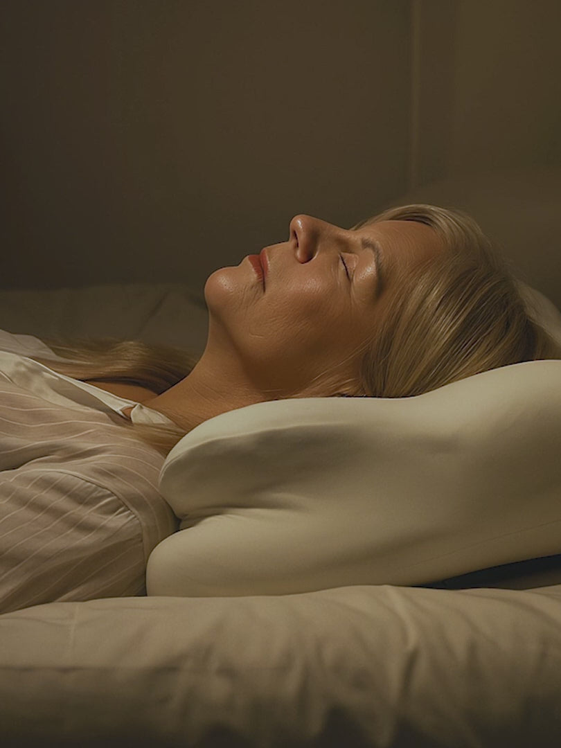 Most pillows (even the expensive ones) flatten under your weight, forcing your neck into unnatural angles that trigger your pain receptors and prevent deep REM sleep.